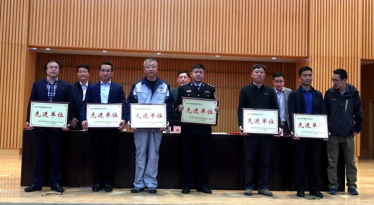 2018年4月28日,開發區2017年度安全生產會議在新海連大廈召開。會上對18家“安全生產先進單位”和26名“安全生產先進個人”進行了表彰。我公司榮獲2017年度開發區“安全生產先進單位”榮譽稱號。(氨綸宣)
