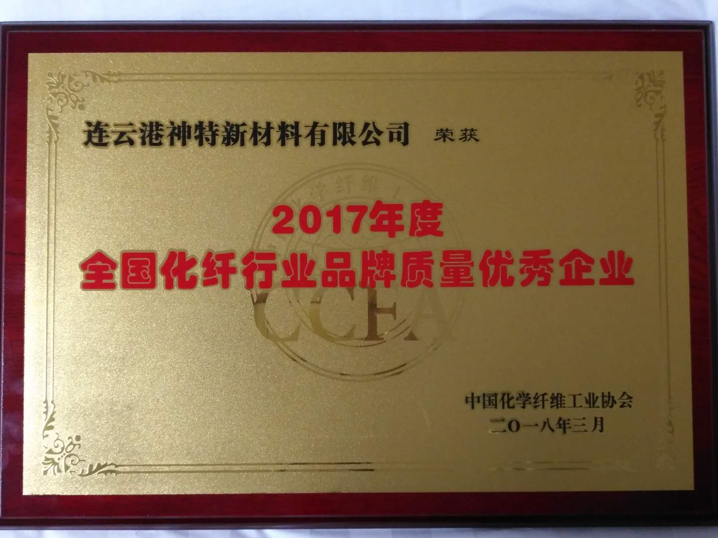 3月13-14日,由中國化學纖維工業協會主辦的“中國化纖行業高質量發展論壇暨第四次理事會擴大會議”在上海召開。會上,神特公司榮獲“2017年度全國化纖行業品牌質量優秀企業”稱號。