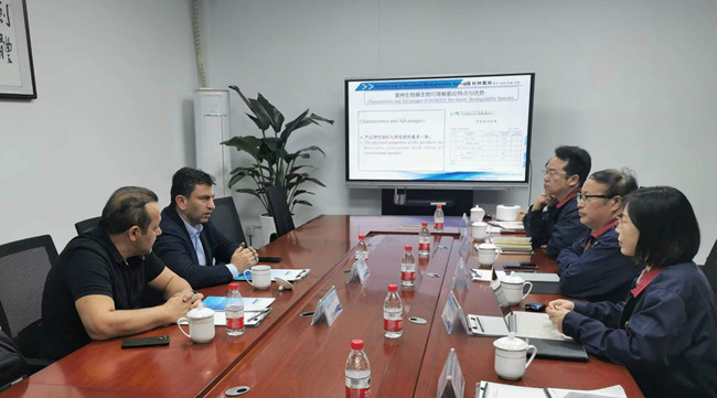 會談期間,曾登部長就生物基生物可降解氨綸的開發背景及市場應用做了專題介紹;雙方還就消費后再生氨綸、低溫定型氨綸及無縫內衣專用氨綸等產品的性能及銷售前景進行了深入探討和交流。客戶表示,隨著人們消費理念的轉變,綠色低碳、環保可持續將成為新風尚,而奧神氨綸在這方面一直走在前列,因此,對與奧神的合作充滿信心。