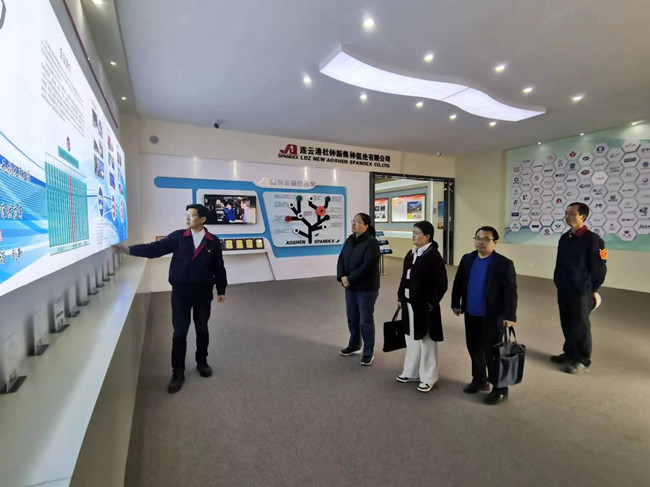 2023年4月21日,連云港經濟技術開發區法院副院長胡雪梅一行蒞臨氨綸公司進行法務工作交流指導,公司常務副總經理楊森、副總經理陳靜陪同。
