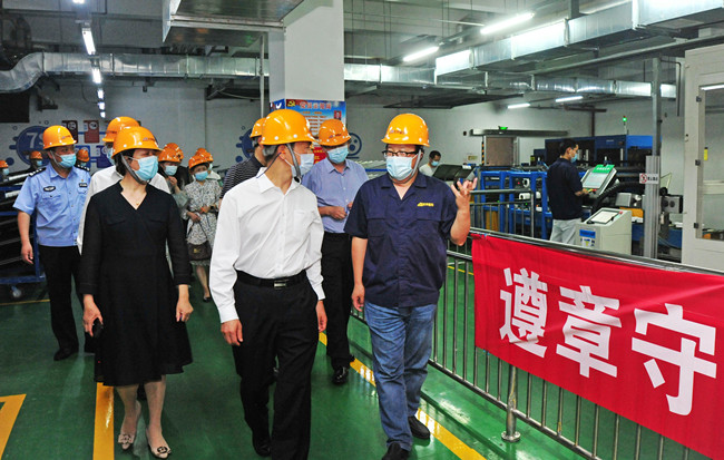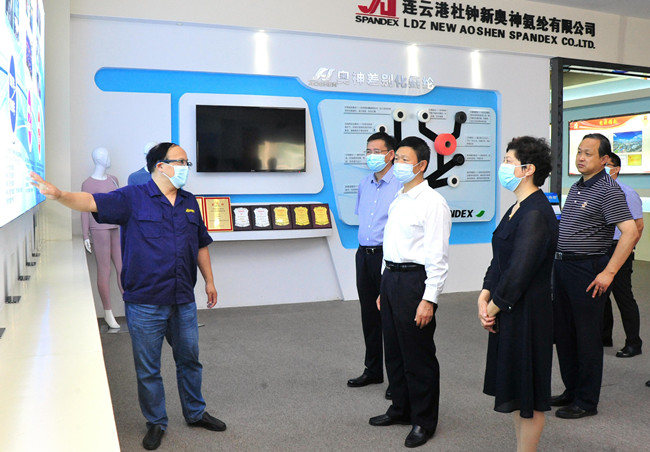 6月15日,連云港市副市長陳紅淦一行來杜鐘氨綸公司蒞臨指導。公司總經理張斌陪同調研。
