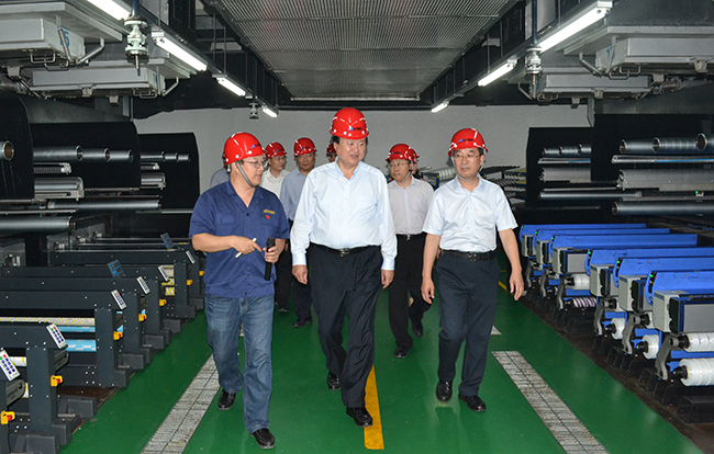 徐市長一行深入公司八期車間、立體包裝庫等一線生產區(qū),對氨綸絲生產工藝流程以及公司生產運營情況進行了詳細了解。觀摩期間,公司總經理張斌向徐市長一行介紹了公司八期項目運行狀況、實施差別化戰(zhàn)略的成效以及公司中長期規(guī)劃目標。