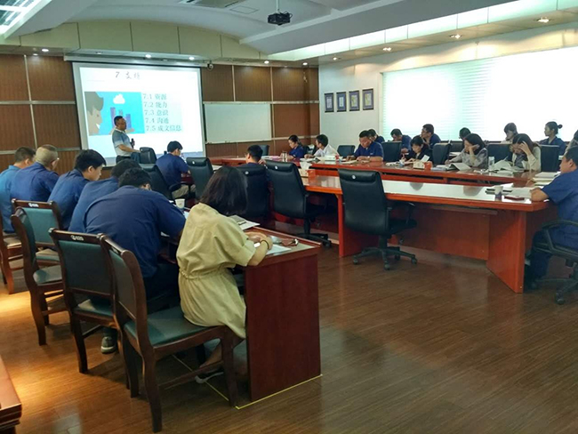 9月7-9日,氨綸公司特邀方圓標(biāo)志認證集團王文老師來公司對各部門主管及體系內(nèi)審員等30余人進行ISO9001和ISO14001新版標(biāo)準(zhǔn)內(nèi)審員培訓(xùn)。