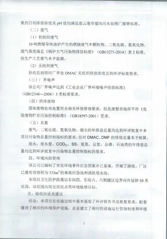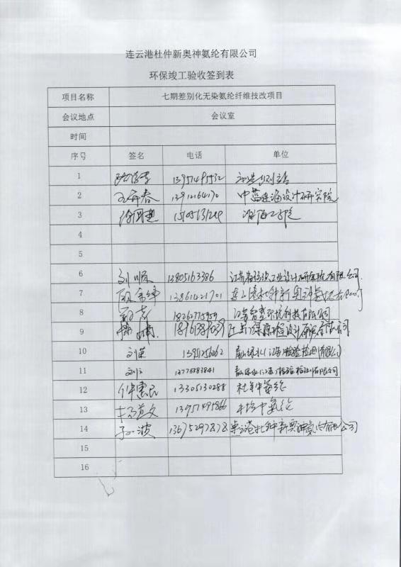 七期差別化無染氨綸纖維技改項目竣工環(huán)境保護自主驗收意見