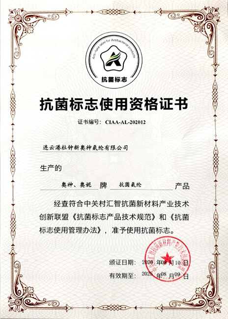 杜鐘氨綸作為CIAA會員,國內唯一一家通過“抗菌標志”認證的氨綸供應商,持續致力于疫情防護,為推動健康中國建設,提高人民健康水平做貢獻。