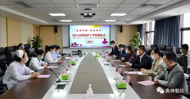 2020年“5·12國際護士節”這個特殊的日子里,奧神氨綸定制一批使用奧神專利產品抗菌防臭襪、防脫散襪、驅蚊襪等功能性防護襪,共15000雙,在連云港市總工會的帶領下,為連云港市第一人民醫院的白衣天使們送上祝福。通過捐贈活動為連云港市第一人民醫院疫情防控工作貢獻一份力量,擔負起應有的社會責任。