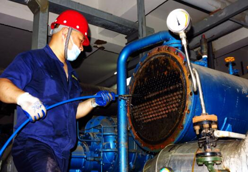 自主性:疫情期間,公用工程部自主維修小組根據八期冷媒機組運行狀況,判斷急需清洗冷凝器和油冷器的情況,緊急申請采購管道清洗設備,在無技術無培訓的情況,攻堅克難,自加壓力,在較短時間內熟悉和掌握清洗及使用技巧和方法,實現當天內完成冷凝器端蓋拆卸、換熱器管束清洗和復位調機工作,保證了生產運行的連續性。