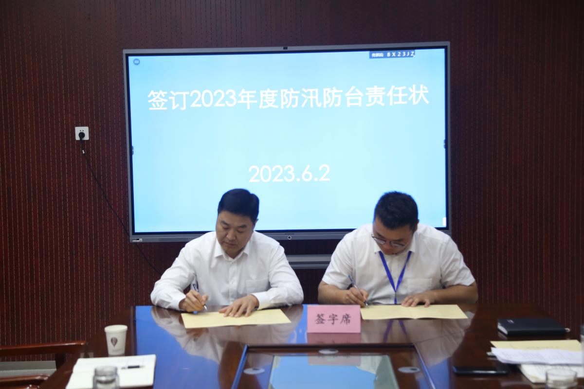 會上,各單位、項目部、園區簽訂了《2023年度防汛防臺責任狀》。