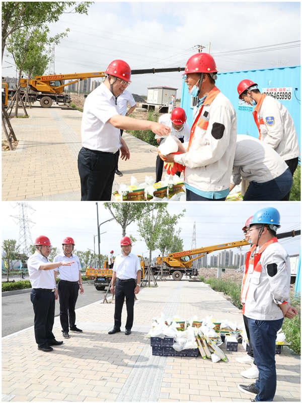 7月28日上午,集團公司黨委副書記戴鴻鳴、工會主席劉承志一行,深入公司施工一線走訪慰問職工,把綠豆、牛奶等防暑降溫用品送到他們手中,在炎炎夏日,為一線職工送去集團公司的深切關懷。