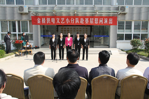 近日,為慶祝建國65周年,進一步踐行黨的群眾路線,豐富基層職工文化生活,公司工會組織文藝小分隊深入供電所等基層單位巡回慰問演出,為一線職工送去精彩紛呈的“文化大餐”,贏得了基層職工群眾一致好評。 在臨時搭建的舞臺上,文藝小分隊自編自演的的歌舞、相聲、詩朗誦、器樂彈唱等豐富多彩的節目,貼近基層,貼近生活,謳歌金橋供電十年成就,展示金橋供電職工風采,贏得了現場觀眾陣陣掌聲。中間還穿插了擊鼓傳花觀眾互動節目,基層職工踴躍參與,氣氛活躍。最后,演出在會場全體人員齊唱《歌唱祖國》中圓滿落下帷幕。 公司自成立以來,一直注重企業文化建設,利用多種形式活躍基層文化生活,滿足員工多層次、多角度的精神需求。不僅加強基層單位“職工小家”建設,建立了“職工書屋”、職工活動室、乒乓球室、羽毛球活動場地等基礎設施,還舉辦了職工運動會、籃球賽和文藝演出等活動。不僅發揮傳統職工文化活動的優勢,而且還創新具有時代特色文化活動的形式,不斷增強員工的凝聚力和向心力。通過本次深入基層慰問演出,不僅為戰斗在一線的基層職工獻上一份精神“大餐”,同時也展示了金橋供電的良好作風和企業形象。(趙艷)