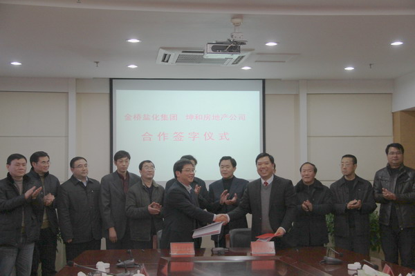 12月30日下午,集團公司領導顧永庚、胡建明、楊國新等來到灌云縣人民政府,與灌云縣委書記、縣人大常委會主任魯林、縣長陸永軍等領導親切會談,共商合作事宜。在會談中,集團公司與灌云縣人民政府簽訂了礦鹵鹽田合作協(xié)議,與坤和房地產公司簽訂了東園酒店合作協(xié)議,并委托公司代表集團公司,全權管理東園國際大酒店。