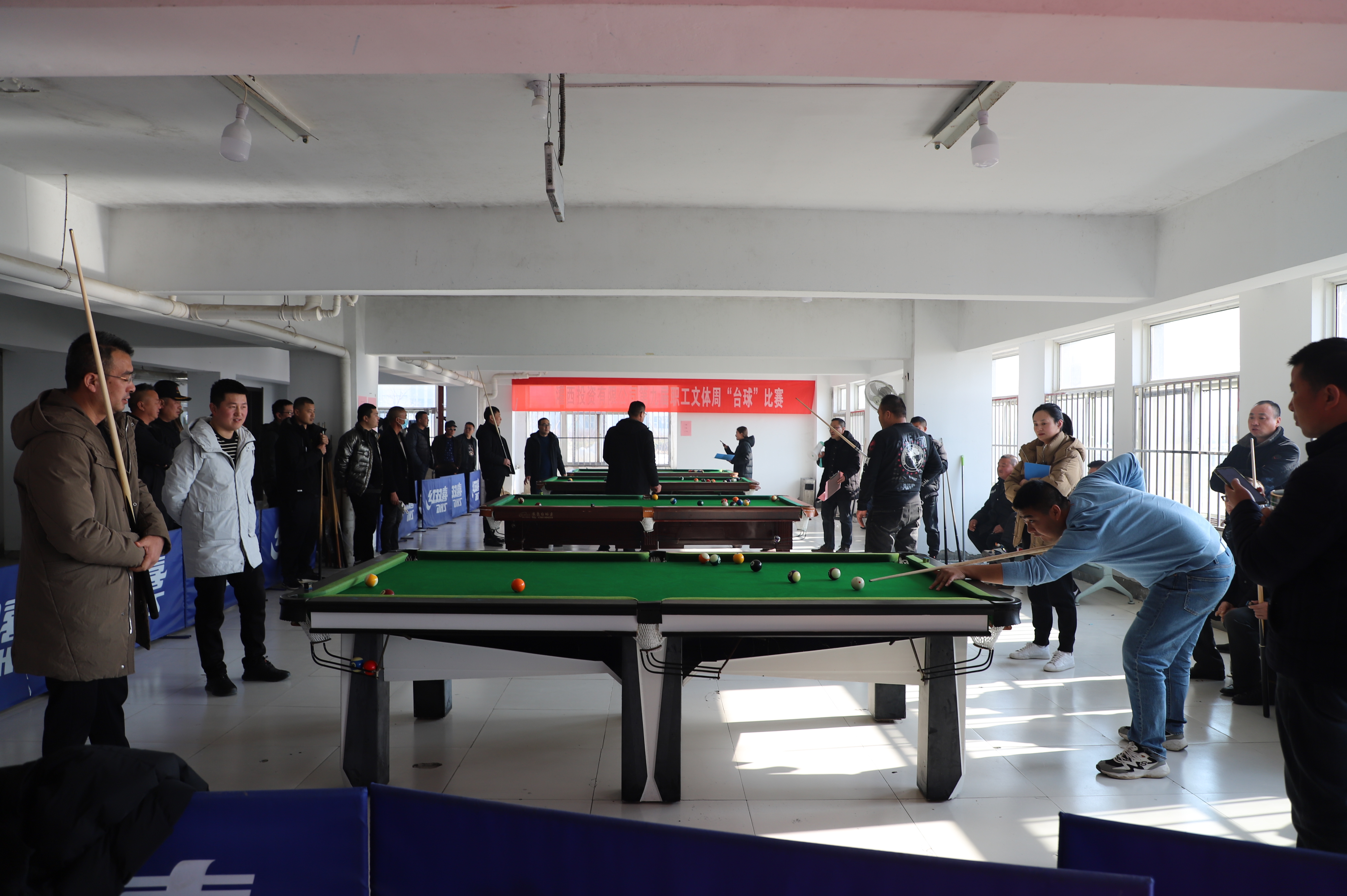 12月21日下午,臺球比賽在裁判員一聲令下正式開始,來自各個單位56名選手,分為8組進行比賽,采取單循環淘汰規則,小組內進行逐對“廝殺”,小組前兩名出線。比賽過程相當激烈,有的眾多高手被分在一組,俗稱“死亡之組”,每個人臉色凝重,場外圍滿了觀眾;有的爆出“冷門”,去年獲得第一名的選手第一輪慘遭淘汰;有的選手比較緊張,洞門門口球都沒有打進。經過激烈角逐,共有16名選手出線。