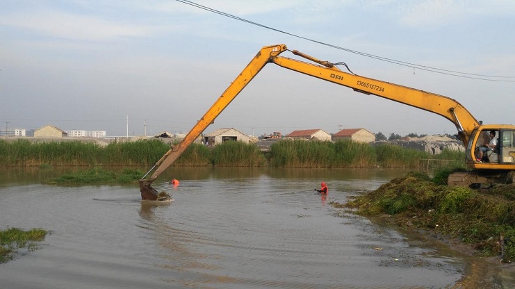 為不影響淡水魚塘正常供水,機械服務公司急西旺公司所急,認真組織人力,對西旺東泵站機頭草檔進行更新及水草清理工作。一是及時到現場察看,制定制作、安裝方案,二是組織技術人員進行加工制作,能放棄休息日,加班加點,從備料到制作,一天時間完成,三是人機結合,適時掌握天氣預報,搶時間安裝。從5月29日制作到安裝結束,僅用2天時間。期間勞模王緒華能率先垂范,職工肖華勝等能不怕臟和累,穿好救生衣下水作業。安全指揮員劉洪波能做好現場指揮,確保了此工程安全、高效完工。體現了機械人的戰斗力。為正常開機揚水提供了保證。(上圖為安裝、除草現場)