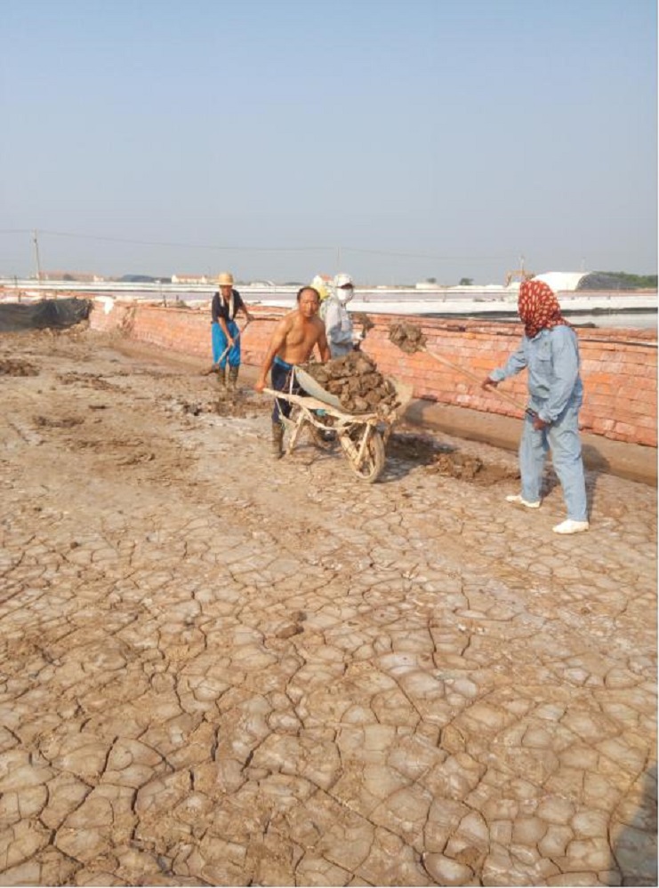 連續(xù)的高溫讓人熱得喘不過氣來,正當(dāng)人們躲在空調(diào)下享受清涼的時(shí)候,日曬制鹽埒南制鹽分公司的廣大干群仍堅(jiān)持奮戰(zhàn)在生產(chǎn)一線,搶抓有利天時(shí)組織生產(chǎn)?;畈?、除硫、整理池板、做天溝各項(xiàng)工作穩(wěn)步有序推進(jìn)。汗水浸濕了他們忙碌的身影子影。