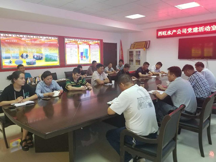 近日,西旺水產公司在該公司黨建活動室召開了全體員工會議。會議傳達了董事會關于公司高層人事變動的相關精神,以及公司的相關工作要求。會議由該公司董事長王德志同志主持,全體員工參加了會議。