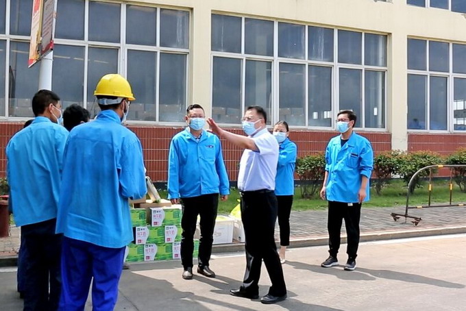 在生產現場,戴書記實地查看了我公司職工現場作業環境,叮囑他們要增強高溫作業時的自我防護意識,注意勞逸結合,預防中暑和由高溫作業引發的各類安全事故;要求公司要切實關心一線職工身體健康,為他們及時解決工作中遇到的問題和困難,合理安排好作業時間,同時要做好疫情防控工作,把各項安全防護措施落實到位。(金宣)