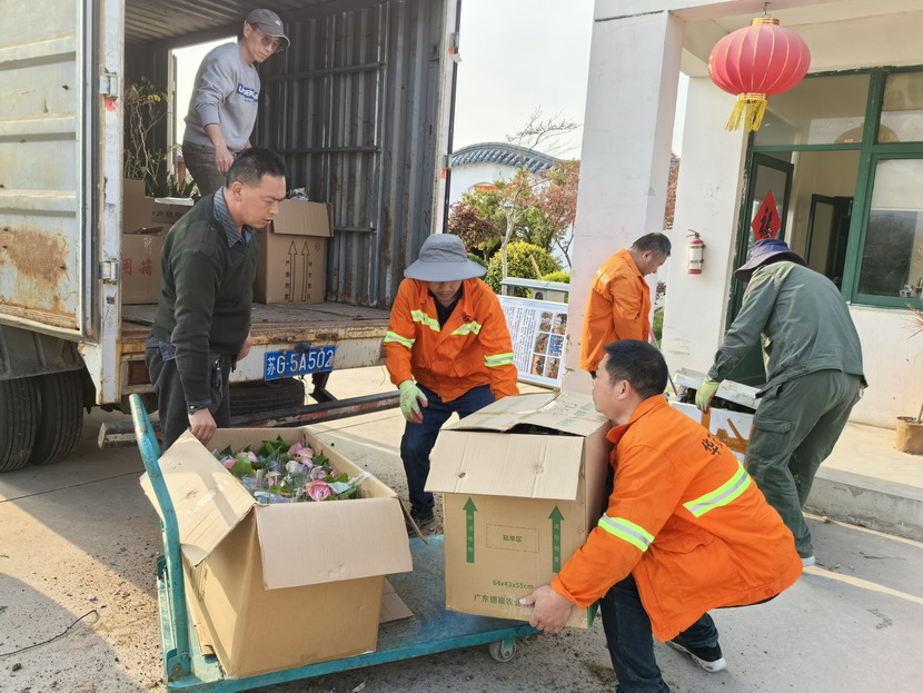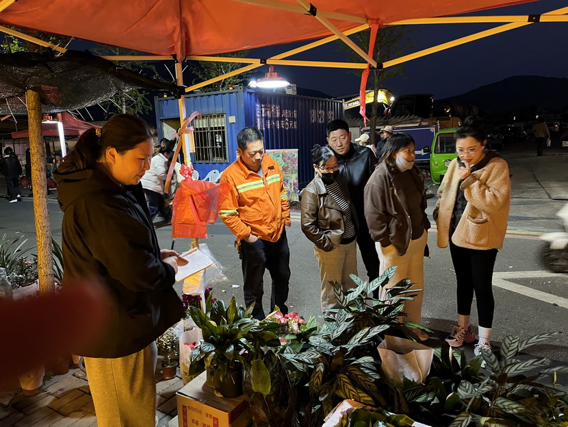 清晨5點半,益豐園林的工作人員就到達廟會現場。他們精心布置攤位,擺放花卉和綠植,準備迎接前來購買的顧客。隨著日頭的漸升,攤位前的熱鬧場景絲毫未減,反而愈發高漲。路過的當地居民紛紛停下腳步,被這一片繁花似錦、綠意盎然的景象所吸引。攤位上的工作人員們熱情洋溢,居民們手捧著剛選好的花卉,共同探討著如何更好地養護這些生命。