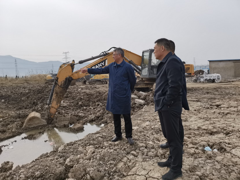 17日上午,公司領導王德志、卞霄帶領礦鹵制鹽升級工程指揮部一行調研灘地改造項目。