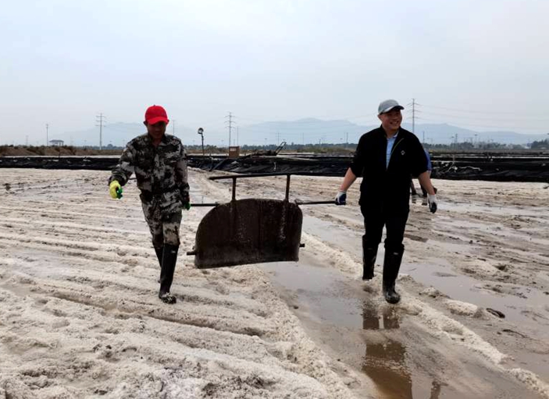 厲兵秣馬,鏖戰(zhàn)秋扒鹽。“同志們,這將是我們臺(tái)北地區(qū)1300年鹽業(yè)史上最后,也是時(shí)間最緊急、任務(wù)最繁重的一次秋扒鹽了”正是因?yàn)槭姑诩纾覀兏峦鼻啊9救w黨員干部爭分奪秒扒鹽、竭盡全力制鹵,奮戰(zhàn)100天,全力沖刺“開新局、奪首勝”目標(biāo)任務(wù)。連云港堿廠關(guān)停在即,鹽鈣聯(lián)產(chǎn)項(xiàng)目終結(jié),原鹽搶收進(jìn)入到了大決戰(zhàn)時(shí)刻。為此,公司上下,從黨委班子到普通辦事員,從直屬單位到公司機(jī)關(guān),全部動(dòng)員起來,9月28日召開了戰(zhàn)前動(dòng)員大會(huì)并進(jìn)行秋扒崗前培訓(xùn)。10月2日,天時(shí)地利人和,夜里9時(shí)10分,隨著機(jī)器一聲轟鳴,扒鹽機(jī)組輸鹽大架銀瀑飛濺,大八組、西灘雙向聯(lián)動(dòng),人工扒鹽、機(jī)械扒鹽齊頭并進(jìn)。公司領(lǐng)導(dǎo)與廣大職工想在一起、干在一起,上下齊心、爭分奪秒,擼起袖子、甩開膀子,在鹽池間盡情地?fù)]灑著汗水,確保勞動(dòng)成果顆粒歸倉,誓奪原鹽收官戰(zhàn)全勝。截止6日晚,公司 排放鈣液6000方,扒鹽3000余噸。