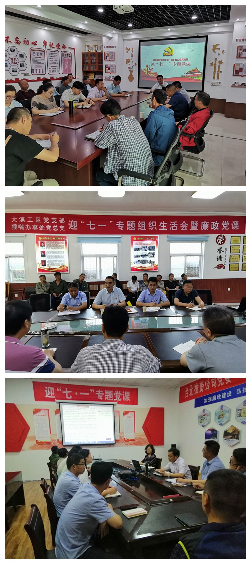 黨委領導班子分頭到各基層黨組織開展“送課上門”。黨委書記王德志圍繞“堅持全面從嚴治黨,嚴肅黨的紀律規矩”這一主題,為海州灣和美多利黨支部作了一堂加強黨紀律建設授課;在大浦工區黨支部和猴嘴辦事處黨總支,黨委副書記汪芹榮從“知”“行”“信”三個方面出發,談了自己的感悟和想法,紀委書記王踴圍繞對黨性的理解和加強、當前形勢和轉變工作作風三方面上了一堂清風黨課;翔立分公司黨建活動室,副總經理柳艷麟以堅定信念、做清廉的管理者為題,帶領大家進一步堅定初心。