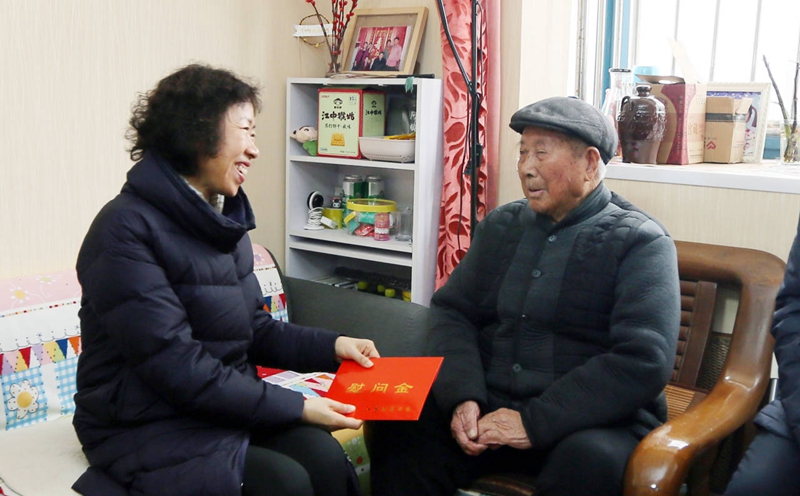 1月3日上午,省總工會黨組書記、副主席朱勁松在市人大副主任、市總工會主席王家全,市總工會黨組書記、副主席丁維杰陪同下,來我公司走訪慰問勞模王壽明同志,親手送上慰問金及慰問品,并為他帶來了新年的祝福。集團公司董事長楊龍、工會主席劉承志陪同走訪。