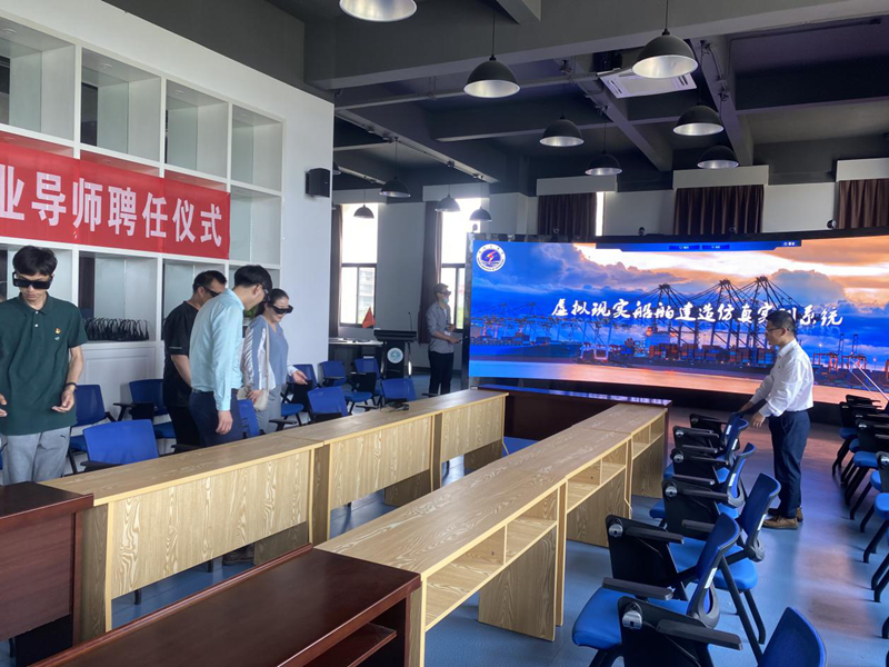 美多利公司到淮工學習體驗“虛擬現實船舶建造仿真實訓系統”